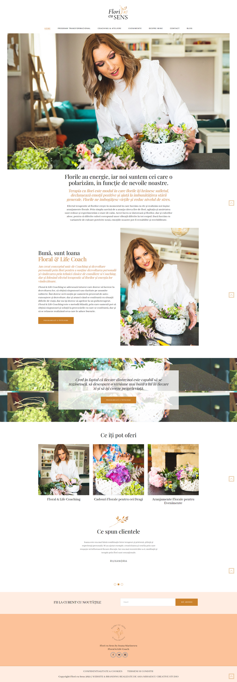 Pentru că identitatea vizuală a noului brand avea nevoie de elemente care să îmbine cele două tipuri de terapii, am inclus în logo și elemente florale. Ioana vinde în magazinul online Cadouri Florale create chiar de ea, așa că tagline-ul explică succint direcțiile de business: Coaching Floral și Cadouri Florale cu Sens.