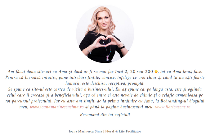 Proiectul a fost realizat pe baza unui Pachet Semi-Custom: STARTUP KIT pentru Branding Personal, pe care l-am adaptat cerințelor specifice ale Ioanei.